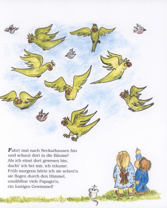 Eine Bilderbuch-Geschichte um die Neckarhausener Papageien in Reimen
